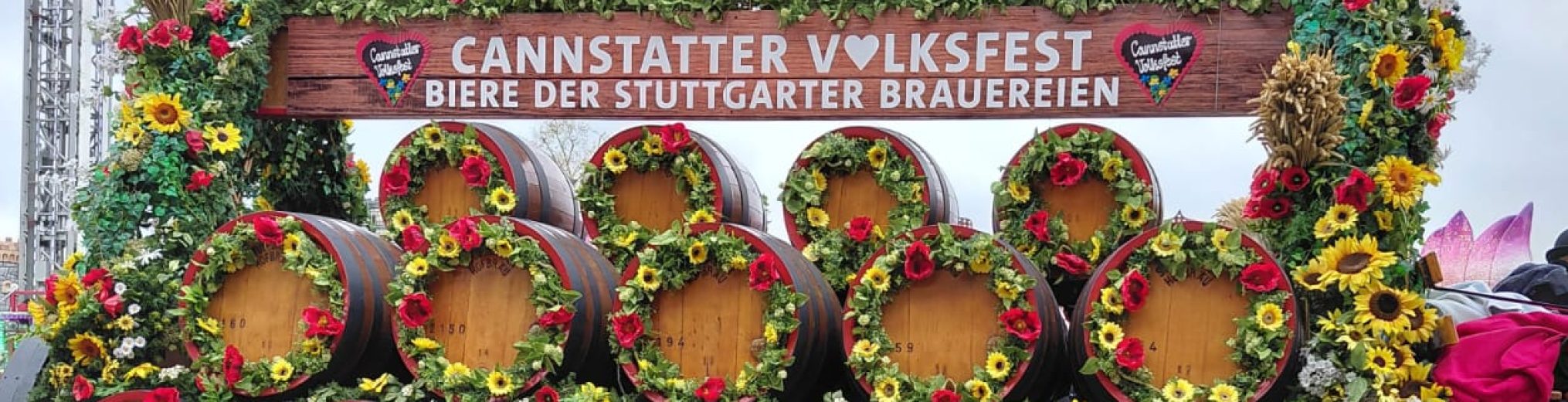 Mit den öffentlichen Verkehrmitteln ( Bus und Bahn ) fuhren wir zum Volksfest nach Bad Cannstatt, wo wir Plätze zum zehnten Albvereinstreffen im Festzelt bei Klauss & Klauss reserviert hatten.