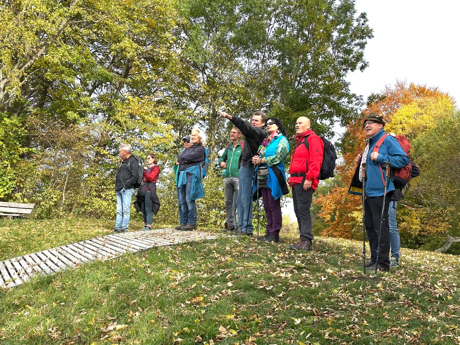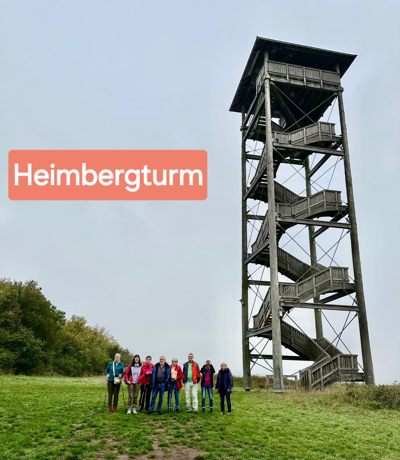 Da das Wetter am Dienstag, zum Radfahren einlud, entschieden sich 8 Radler für eine Tour ca. 42 km entlang der Nahe mit schönem Ausblick auf den Rheingrafenfels und dem Rotenfels. Der Rest der Gruppe wanderten zwischen den wunderschön herbstlich gefärbten Weinbergen rund um den Heimbergturm, der gut sichtbar von vielen Richtungen zu sehen war. Nach dem erklimmen der vielen Stufen mussten wir leider feststellen, dass die Fernsicht nicht so gut war.