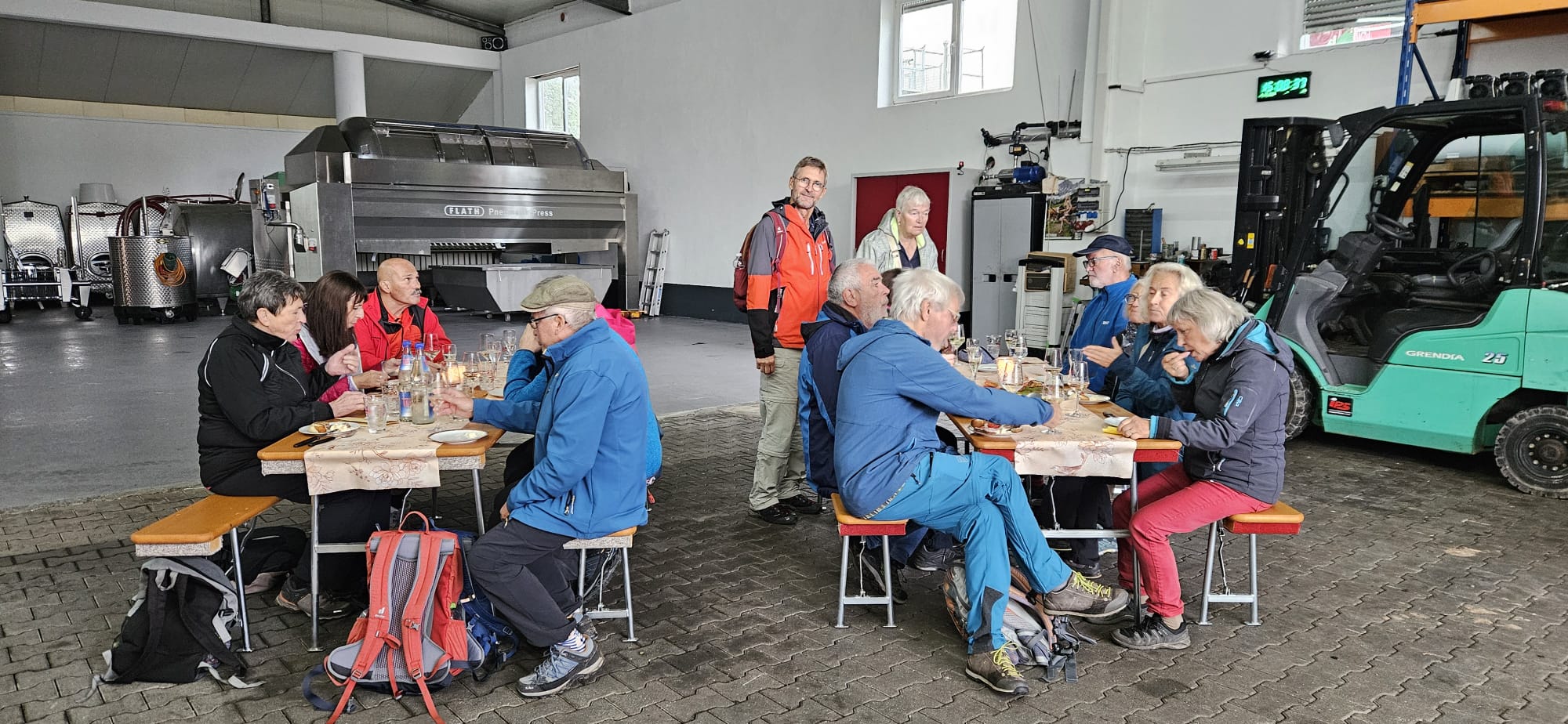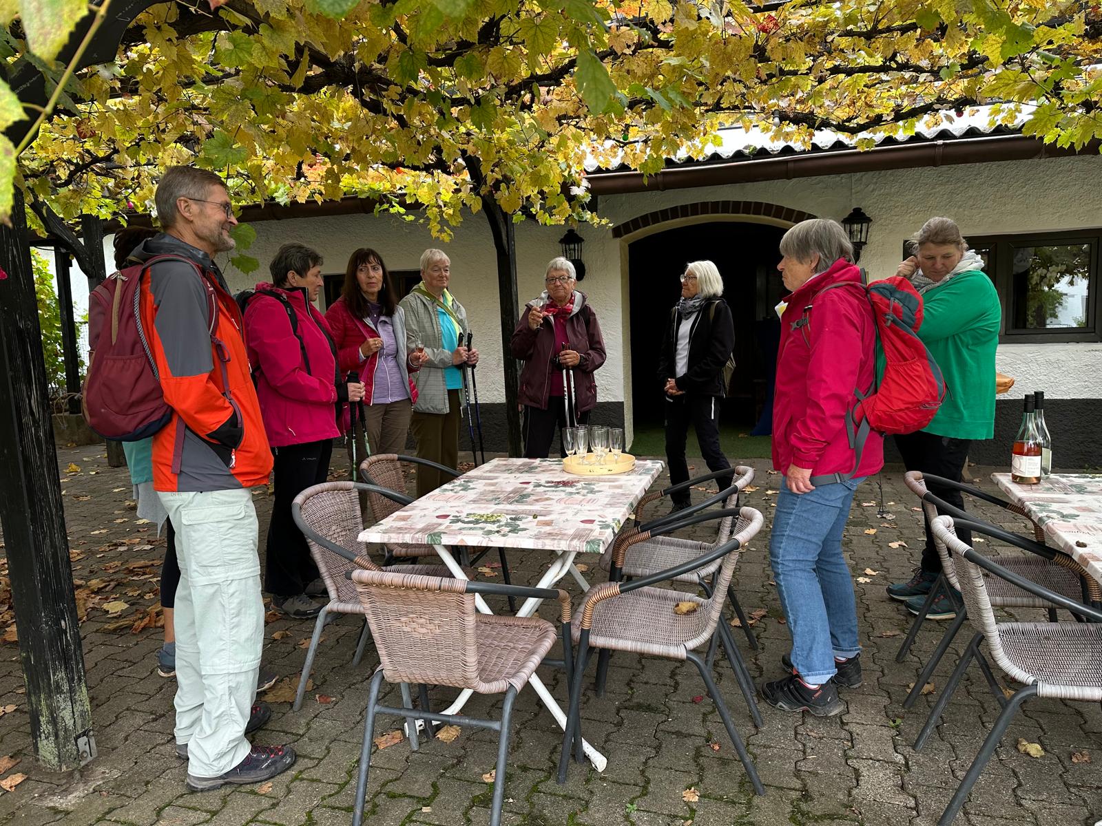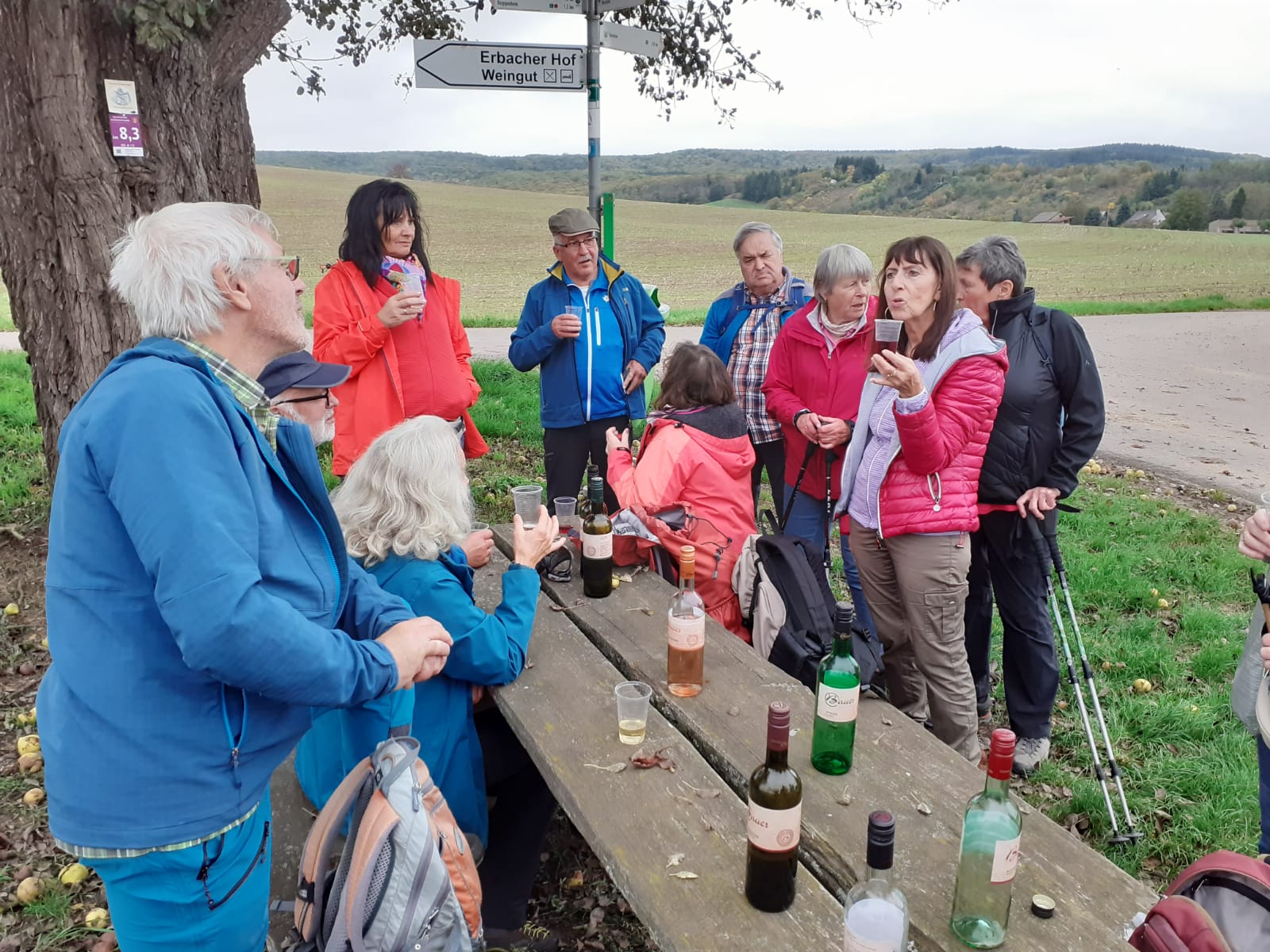 Eine Wanderung am Mittwoch, 08. Oktober durch die Weinberge führte uns nach Sponheim, wo wir bei dem Winzer Bauer zu einer Weinprobe eingeladen waren. Nach dem Verzehr von leckeren belegten Broten und der Verkostung der verschiedenen Weine des Winzers machten wir uns beschwingt auf den Heimweg.