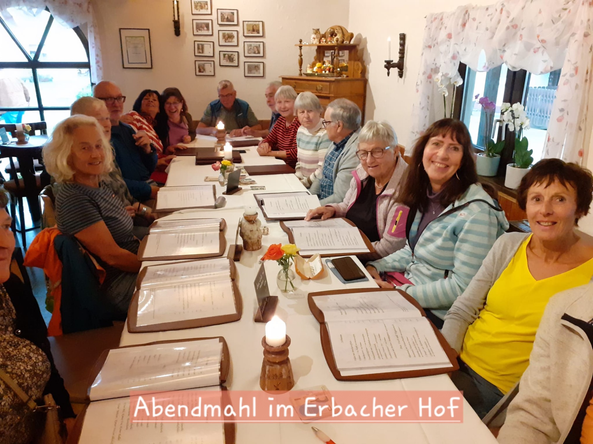 Zur Mittagszeit trafen sich am Sonntag, den 05. Oktober, 17 Vereinsmitglieder im Weingut Erbacher Hof in Burgsponheim. Das Wetter lud zu einer Wanderung zur Burgruine in Sponheim ein, von dessen Turm aus man die Fernsicht genießen konnte. Gut gelaunt gelangten wir wieder im Weingut an und konnten die Zimmer beziehen. Nach dem gemeinsamen Abendessen bildeten sich Gruppen, die sich viel zu erzählen hatten. Ein Tisch mit sechs Frauen freuten sich schon auf das gemeinsame Kartenspiel und fanden sich jeden Abend wieder zusammen.