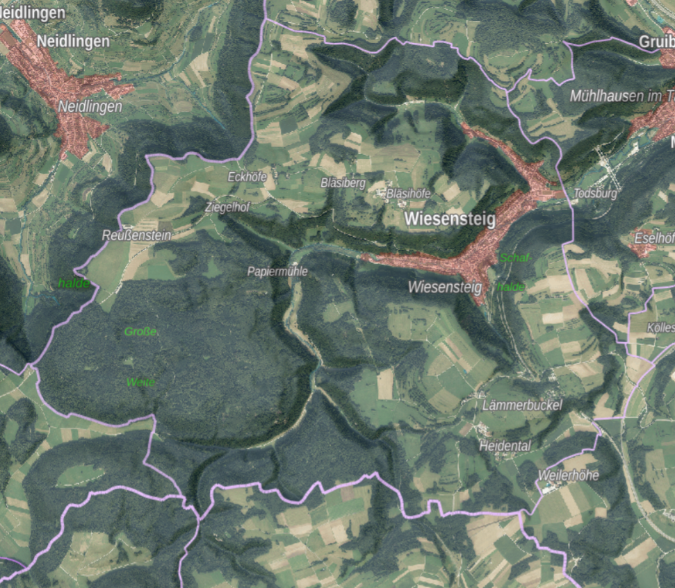 gehört zur Gemarkung Wiesensteig, die Burg selber gehört zu Neidlingen.